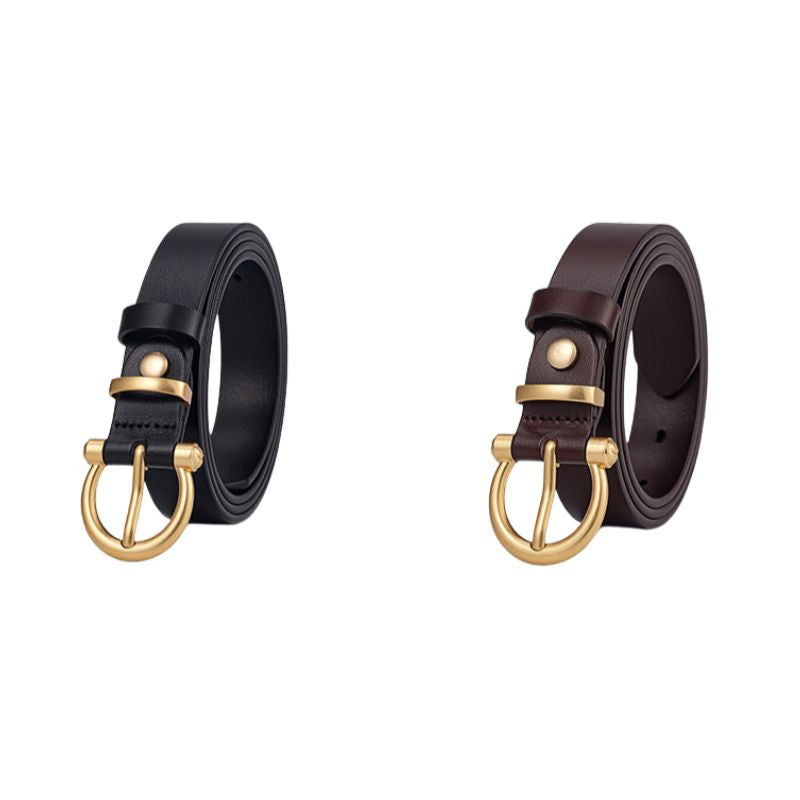 Ceinture femme cuir pleine fleur ceinture lisse boucle demi-lune dorée fine