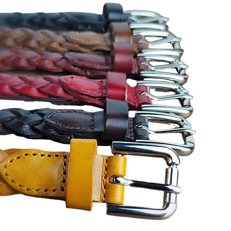 Ceinture femme cuir pleine fleur tressée boucle ardillon manuellement ajustable