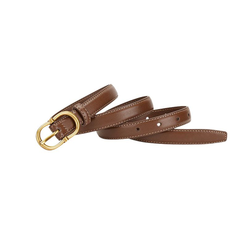 Ceinture femme cuir lisse 95T boucle double ovale dorée fine