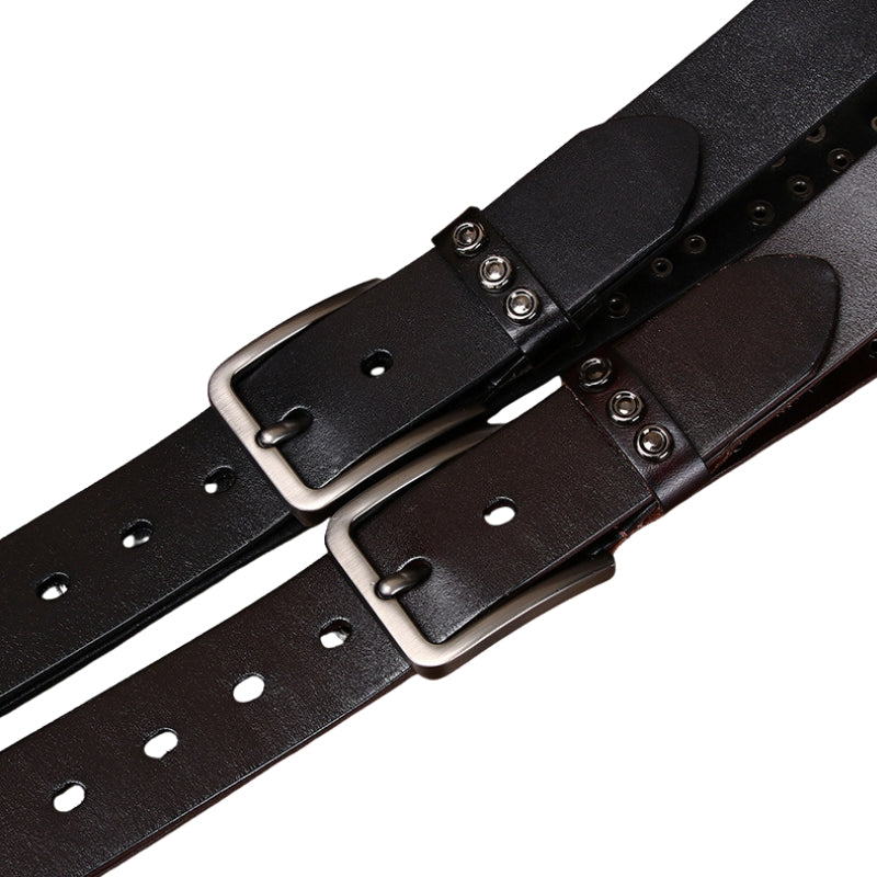 La ceinture Adrien est conçue en cuir pleine fleur de vachette avec un tannage végétal, offrant un aspect naturel et une excellente tenue. Sa texture cloutée vieillie, combinée à des clous métalliques angulaires, crée un rendu fort et structuré, parfaitement adapté aux styles punk ou rock. Large de 3,8 cm et épaisse de 4 mm, elle est robuste et expressive.