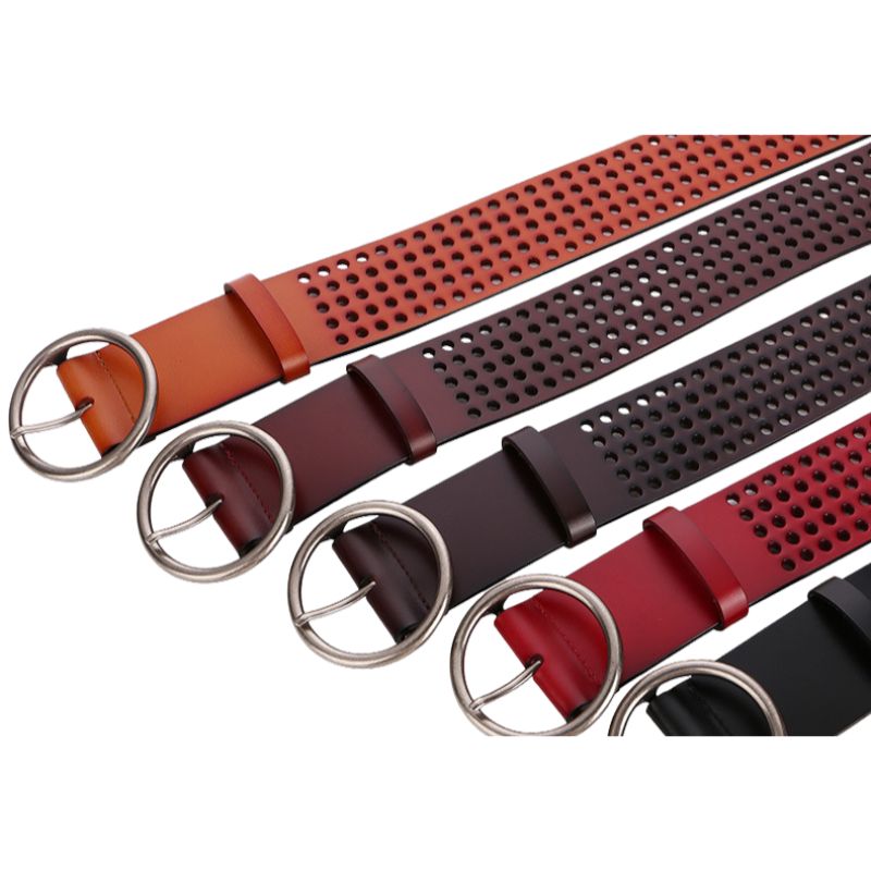 Ceinture femme cuir daim perforé boucle ardillon ronde