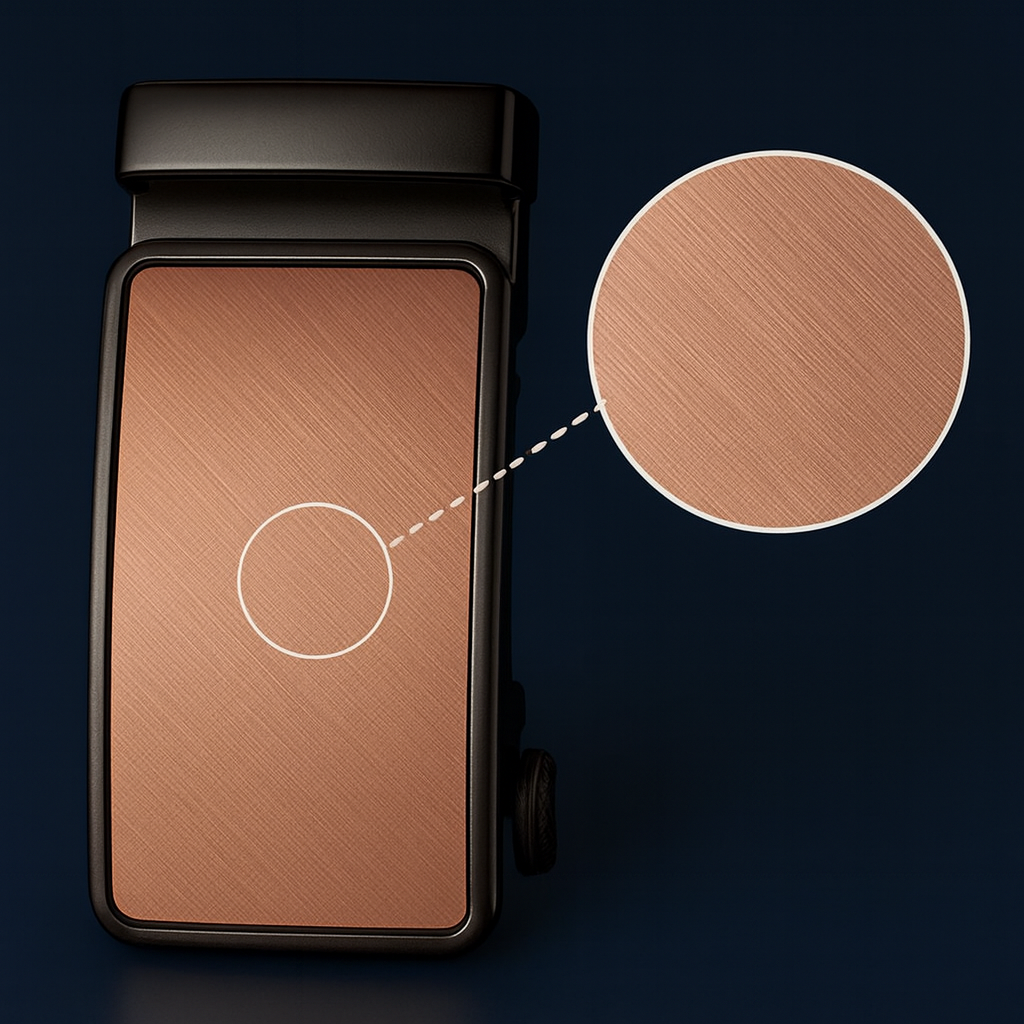 Sa boucle ardillon rectangulaire, en métal cuivré, apporte une touche vintage et élégante. Fixée par un système vissé et démontable, elle permet un ajustement manuel de la longueur pour un confort parfait et une durabilité renforcée.