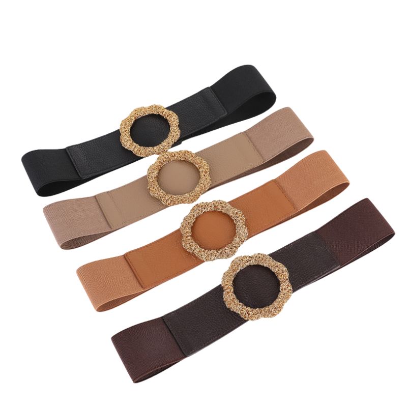 Ceinture femme en cuir daim pleine fleur boucle fleur dorée