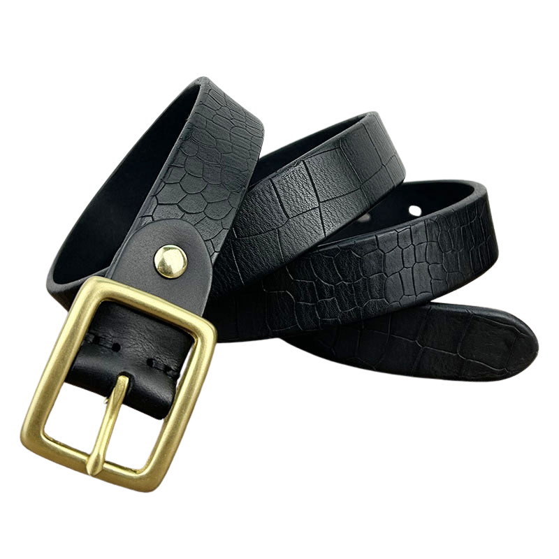 Ceinture homme cuir vachette pleine fleur embossé crocodile boucle ardillon