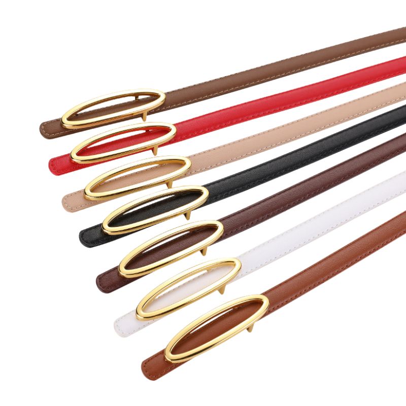 Ceinture femme cuir vachette fine boucle dorée style minimaliste