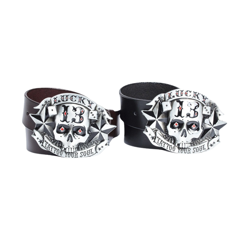 Sa boucle en alliage argenté en forme de tête de mort type Lucky 13 reflète un esprit rock ou biker assumé. Grâce à sa longueur manuellement ajustable, elle s’adapte parfaitement à toutes les silhouettes, de 90 cm à 130 cm. Un véritable accessoire de caractère pour ceux qui veulent sortir du lot.