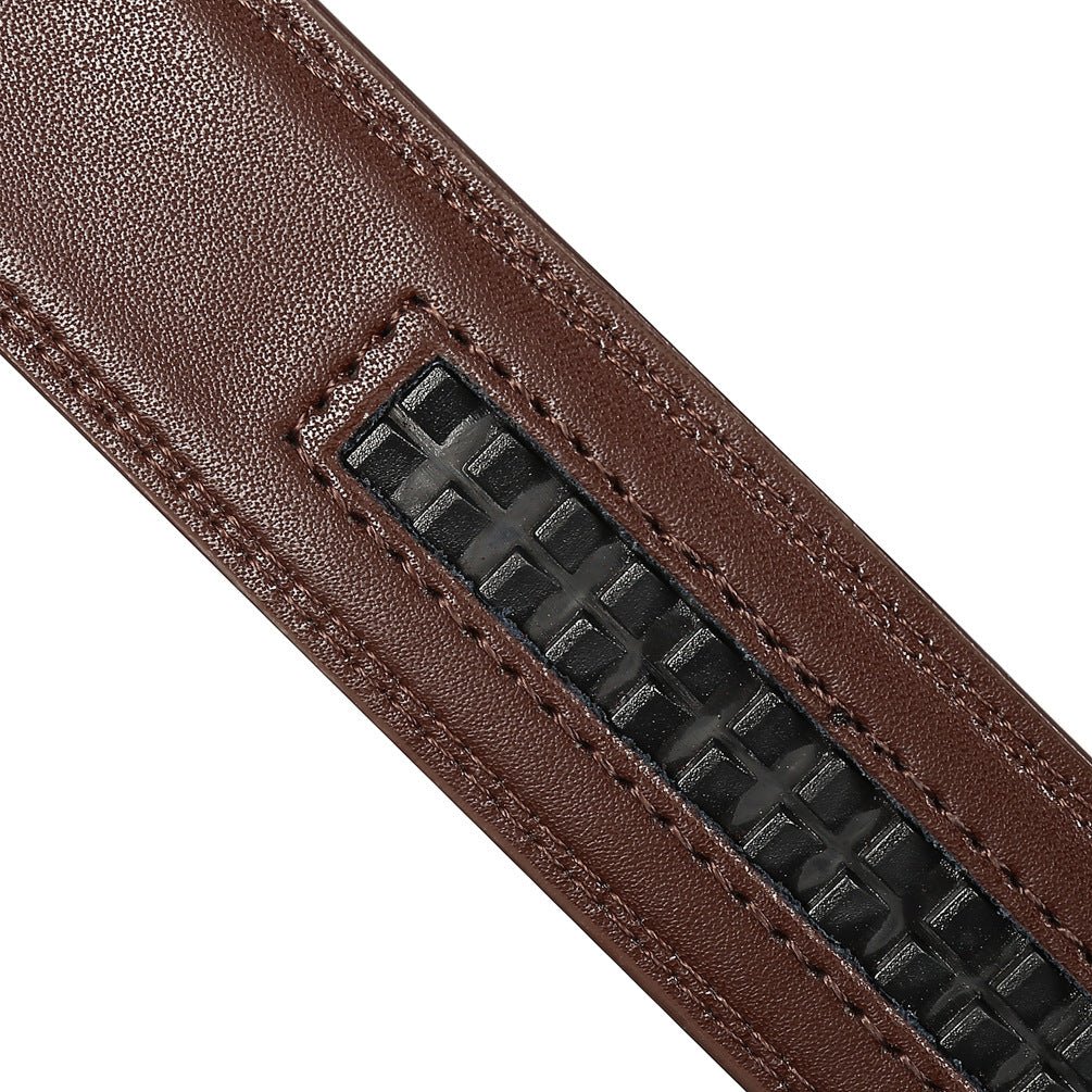 Ceinture homme cuir refendu texturé à boucle automatique noire.