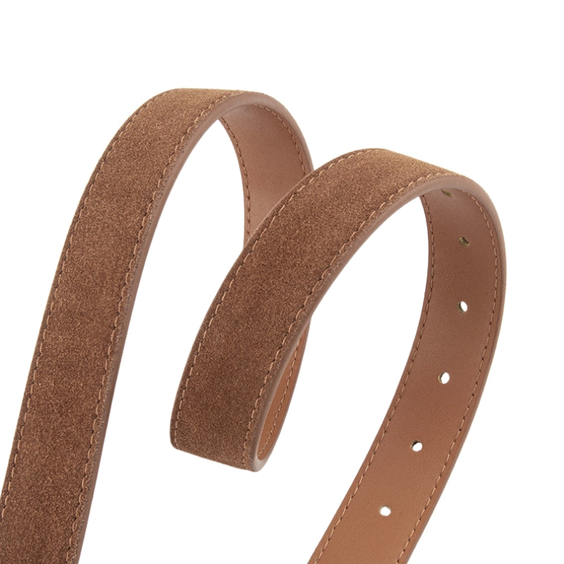 Ceinture femme cuir suédé fine rétro boucle argentée en forme de lettre C