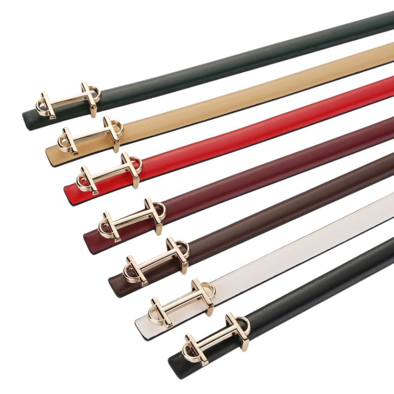 Ceinture femme cuir pleine fleur fine boucle forme de lettre H