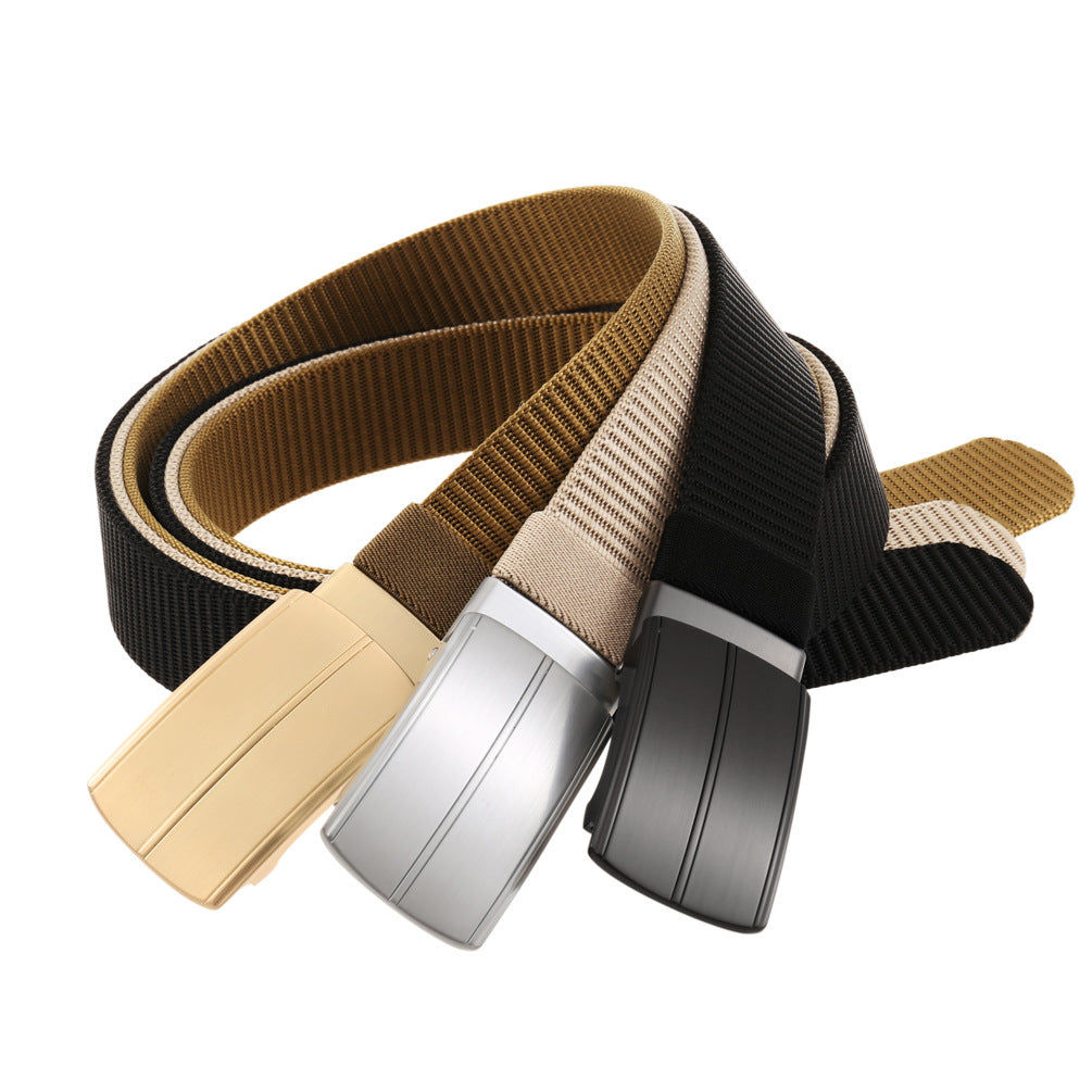 Sa boucle automatique rectangulaire en alliage, disponible en or, argent ou gris, propose un style moderne sans dents. Avec une largeur classique de 3,5 cm, elle assure confort et praticité.