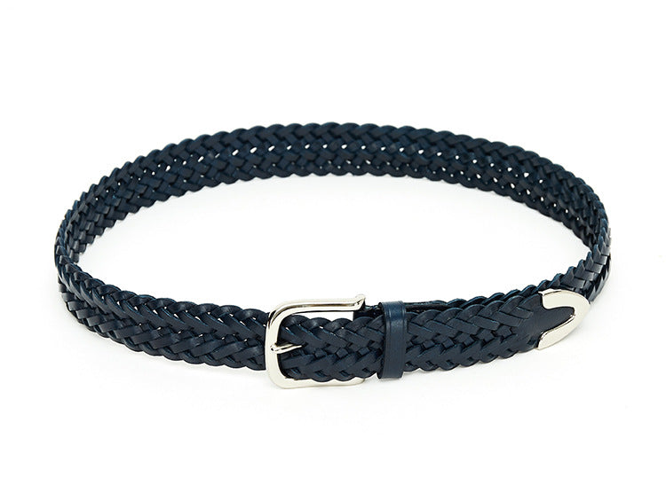 Ceinture mixte cuir pleine fleur boucle ardillon rectangulaire tressée