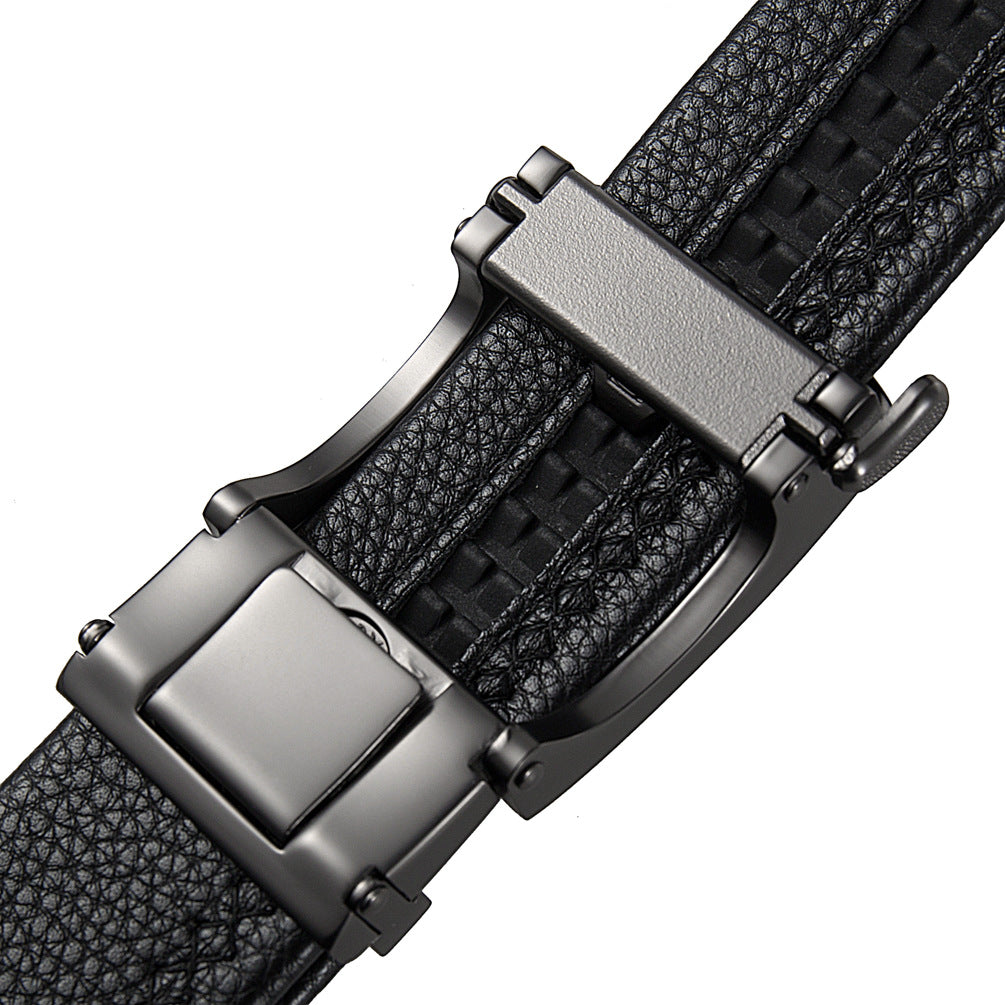 Ceinture homme en cuir refendu texturé, boucle automatique ajourée design