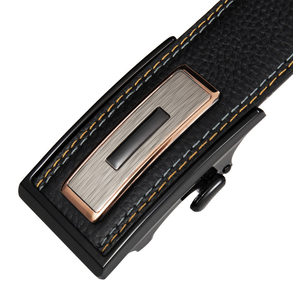 Ceinture homme cuir texturé boucle automatique couture contrastée