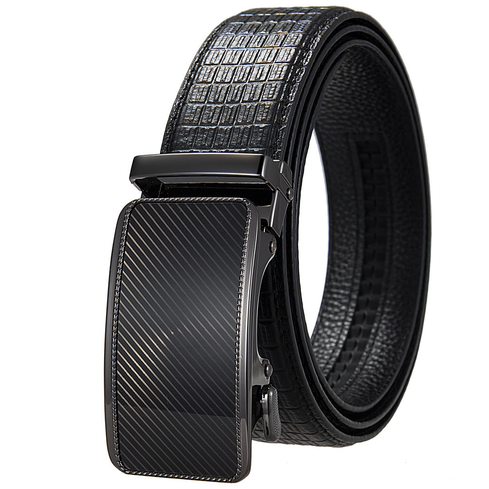 Ceinture homme en cuir refendu texturé, boucle rayée automatique sans trou