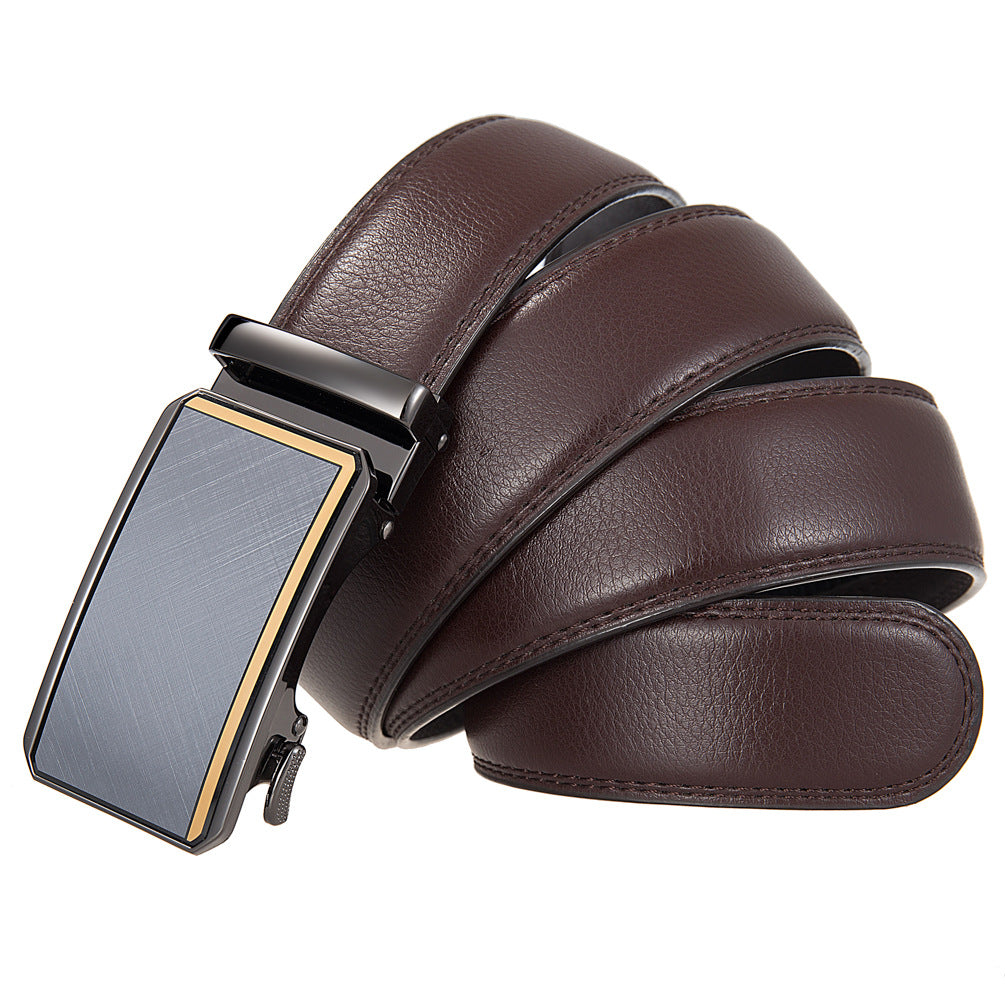 Ceinture homme cuir refendu mixte avec boucle automatique finition brillante