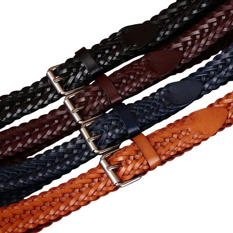 Ceinture cuir pleine fleur tressée boucle ardillon mixte
