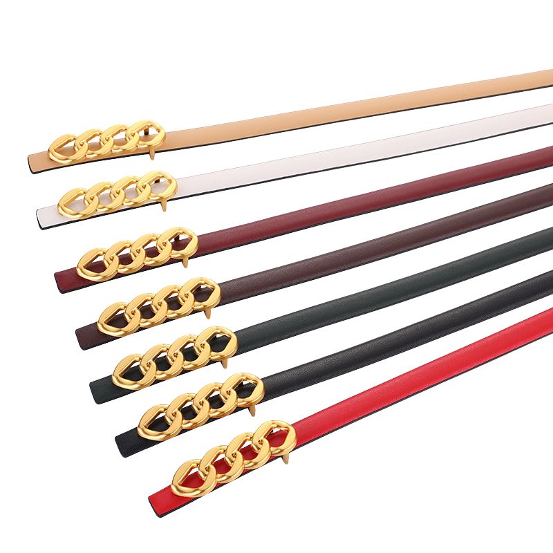 Ceinture femme cuir nubuck fine boucle chaîne dorée ovale