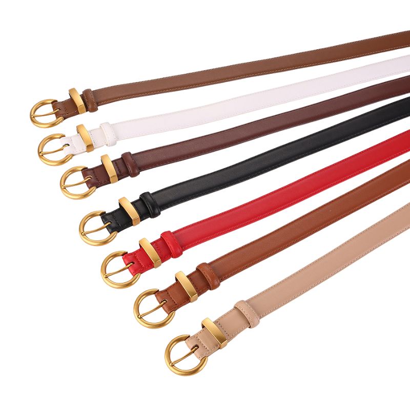 Ceinture femme cuir lisse fine boucle ardillon dorée arrondie élégante