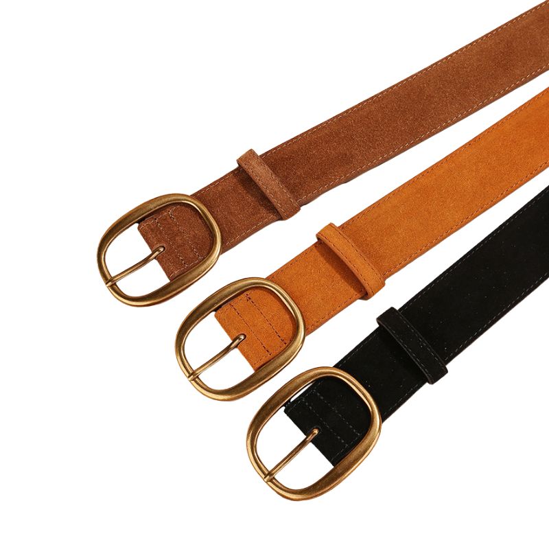 Ceinture femme large en cuir suédé boucle ovale allongée dorée