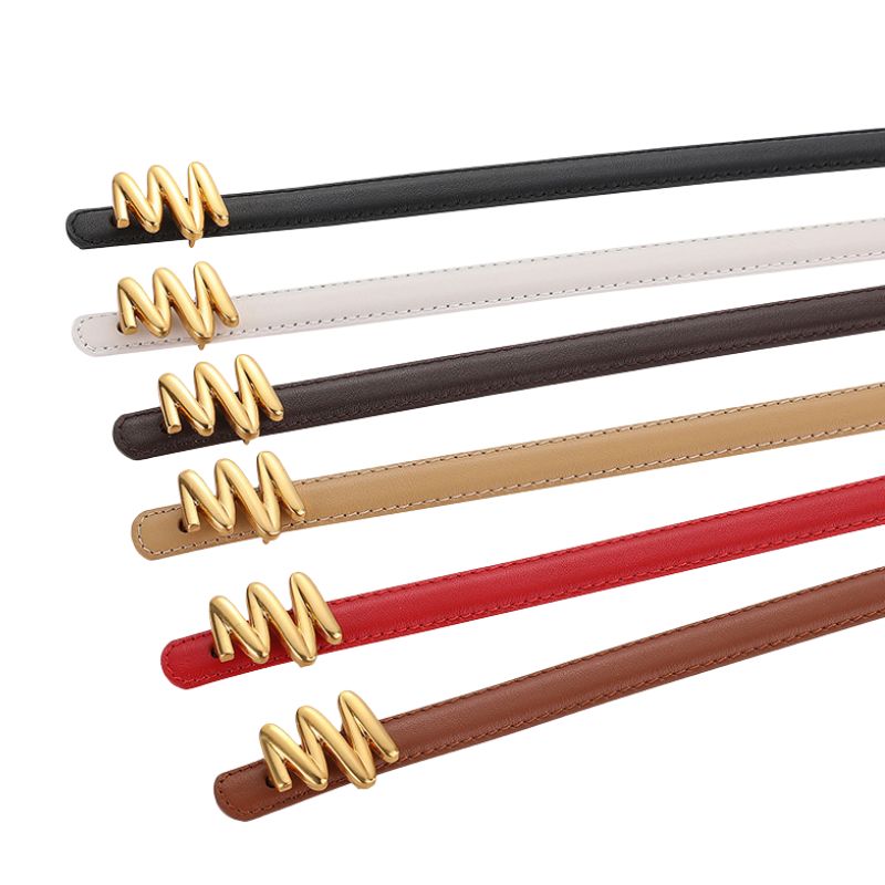 Ceinture femme cuir 2ᵉ couche boucle dorée zigzag moderne