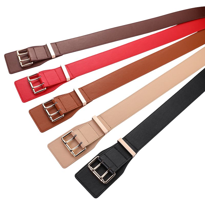 Ceinture femme cuir daim large boucle double ardillon style punk