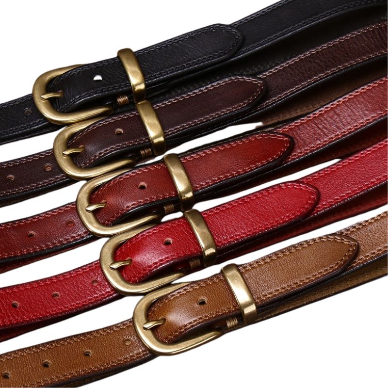 Ceinture femme cuir vieilli boucle arrondie rectangulaire ajustable manuellement