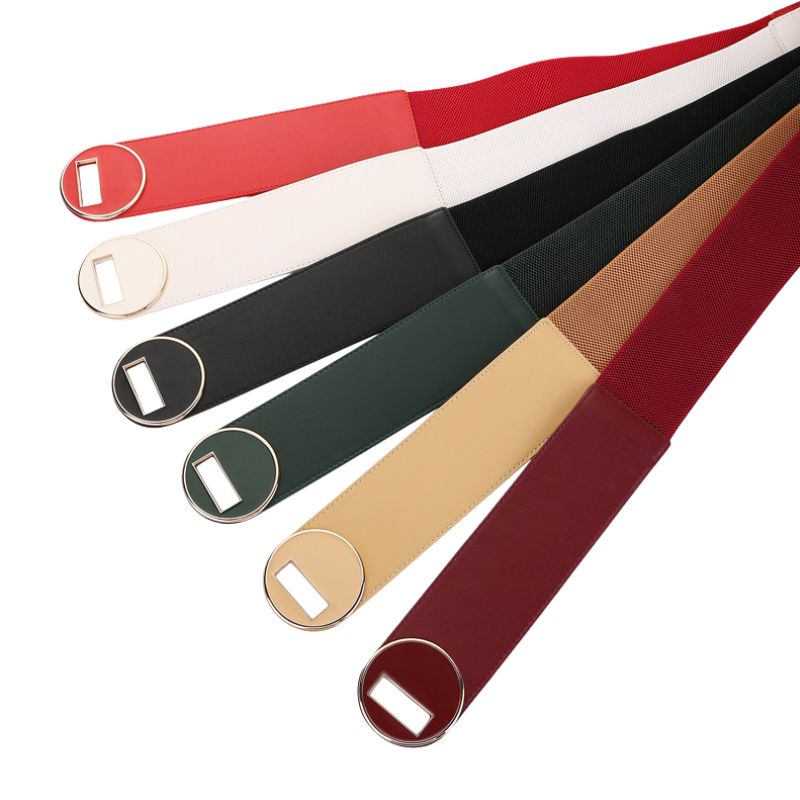 Ceinture femme cuir daim large boucle tournante ronde élastique moderne