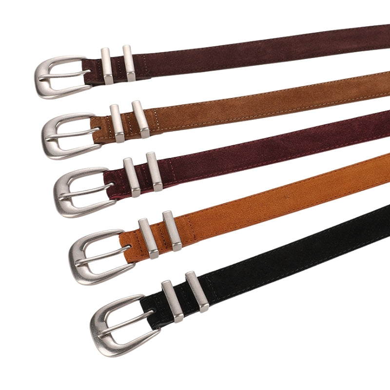 Féerique est une ceinture pour femme conçue dans un cuir suédé de vachette, seconde couche, traité par plastification et électroplacage. Sa texture est particulièrement douce, agréable au toucher, et la finition suédée lui confère un charme naturel qui se marie avec des looks décontractés ou soignés.