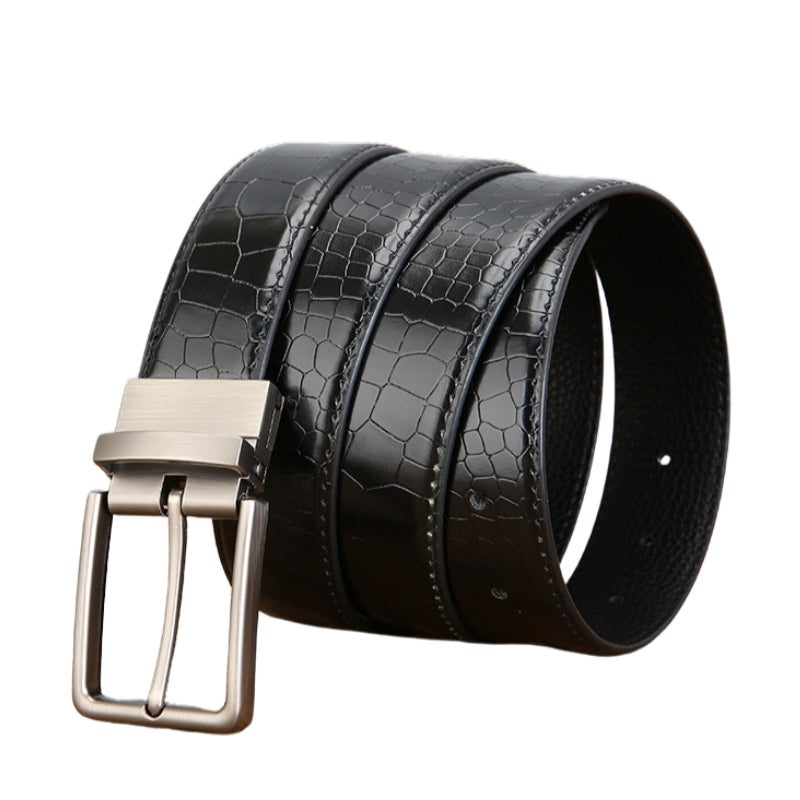 Ceinture homme simili cuir 463T réversible motif crocodile boucle ardillon