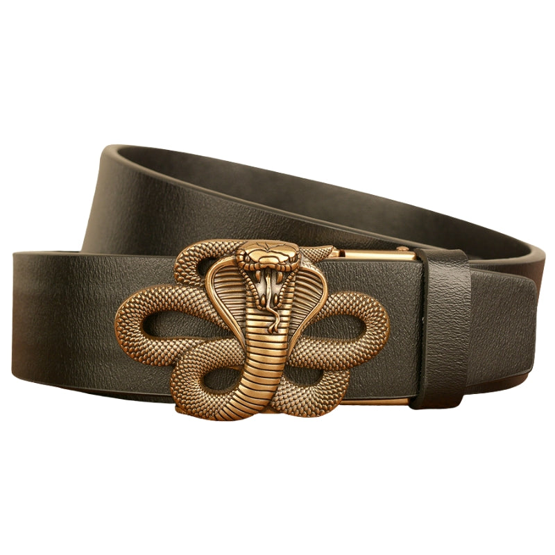 Ceinture homme en cuir lisse large avec boucle automatique cobra