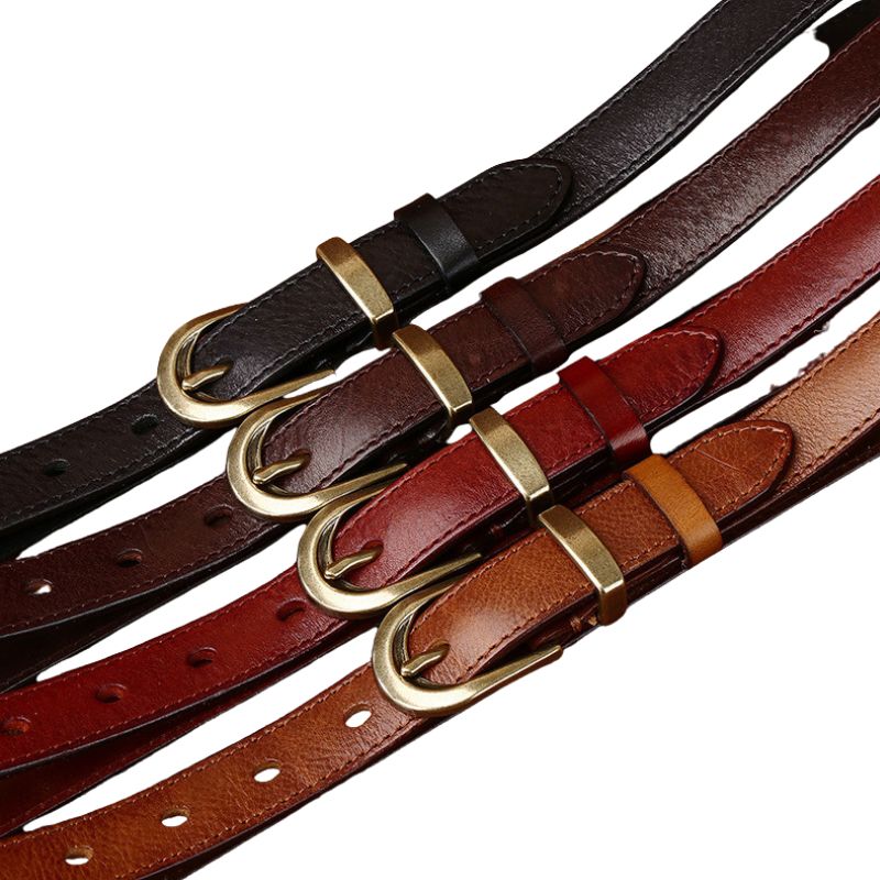 La boucle ardillon à forme arrondie en métal doré s’accorde à la finesse de la lanière et garantit un maintien fiable sans marquer les tissus. La tête vissée facilite l’entretien et la personnalisation, tout en assurant la solidité de l’ensemble au quotidien.