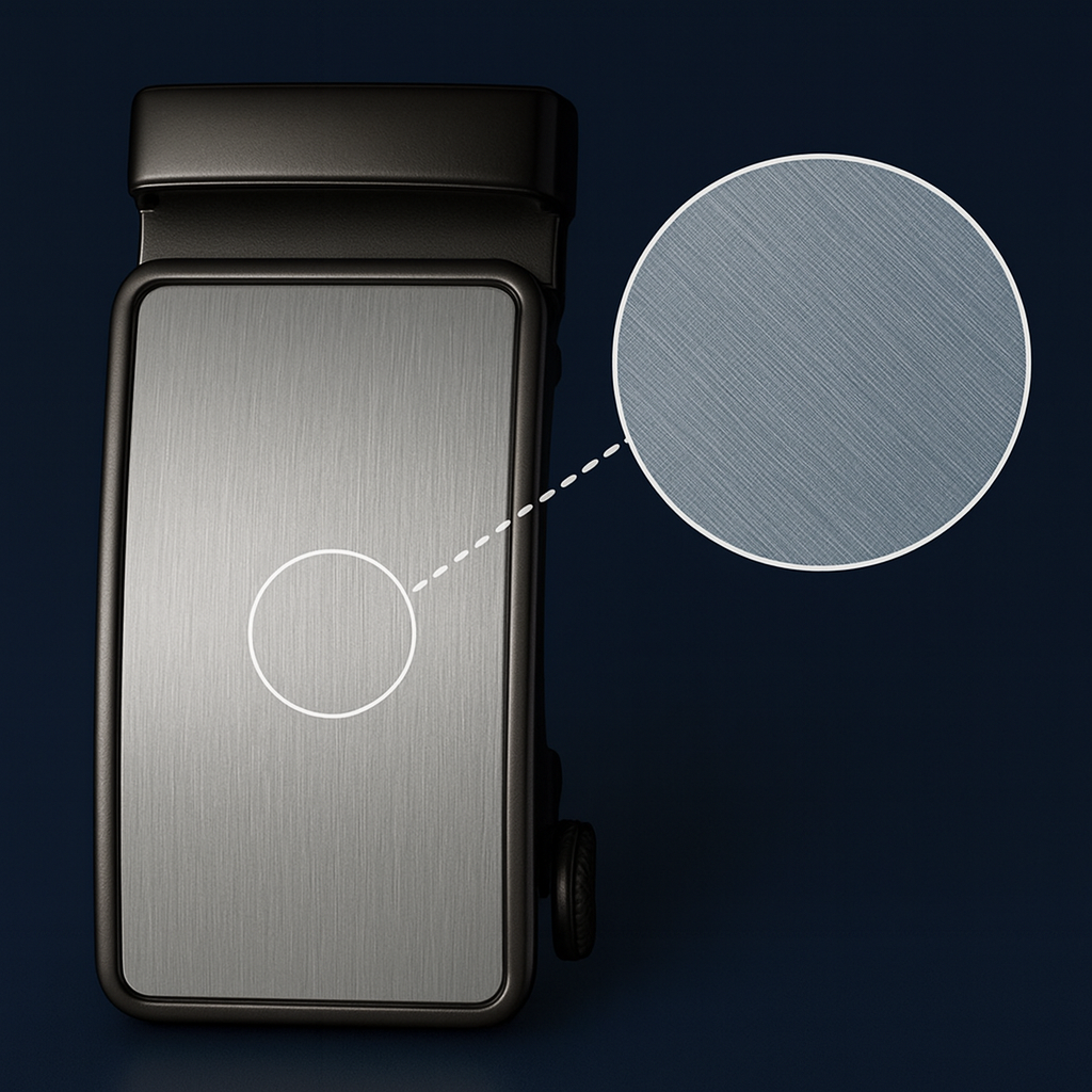 Le cuir grainé se distingue par une surface finement travaillée pour créer des motifs ou des reliefs uniques, apportant ainsi une touche d’originalité et de caractère à la ceinture. Cette finition soignée sublime le cuir en mêlant esthétique et sensation tactile.
