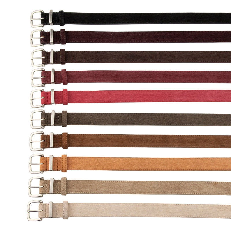La ceinture Intrigue revisite l’élégance vintage avec une touche contemporaine. Fabriquée en cuir refendu de vachette, elle présente un aspect suédé velours qui évoque un style automnal doux et texturé. Son traitement électroplaqué lui assure une belle tenue dans le temps, tout en préservant la souplesse du cuir.