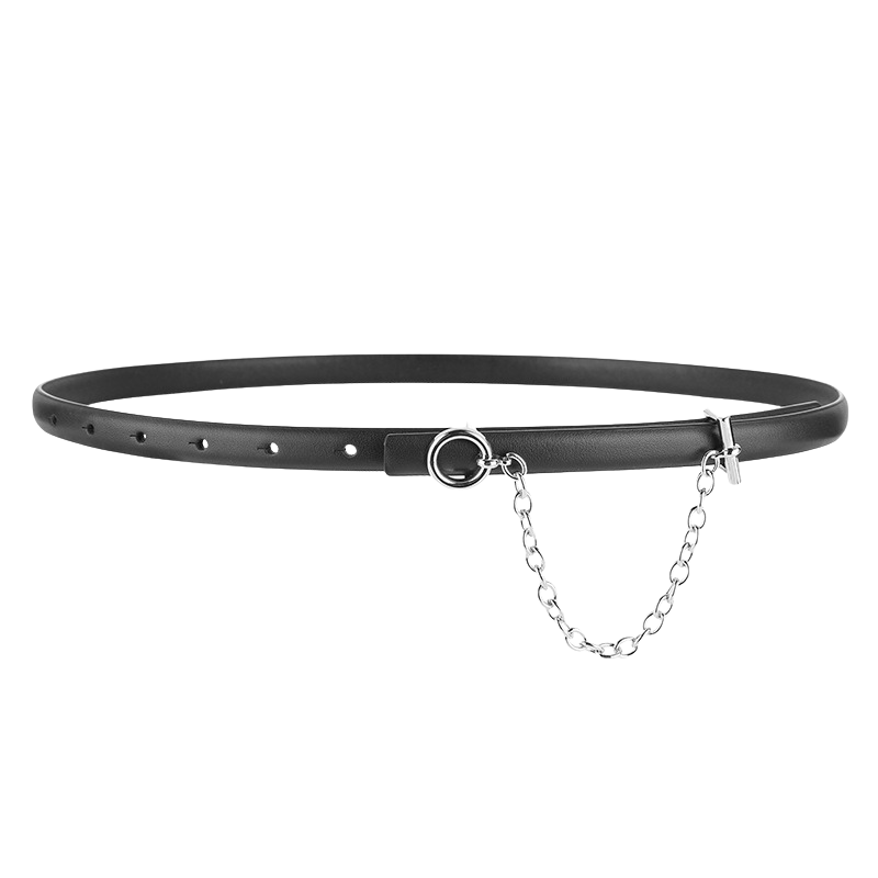Sans boucle traditionnelle, elle se ferme à l’aide d’un système de fixation plate type T-bar, dissimulant habilement la fermeture pour un rendu minimaliste et élégant. Une chaînette décorative en métal doré vient subtilement rehausser l’ensemble, apportant une touche de féminité moderne. La boucle ronde en alliage doré assure une fixation fiable et esthétique.
