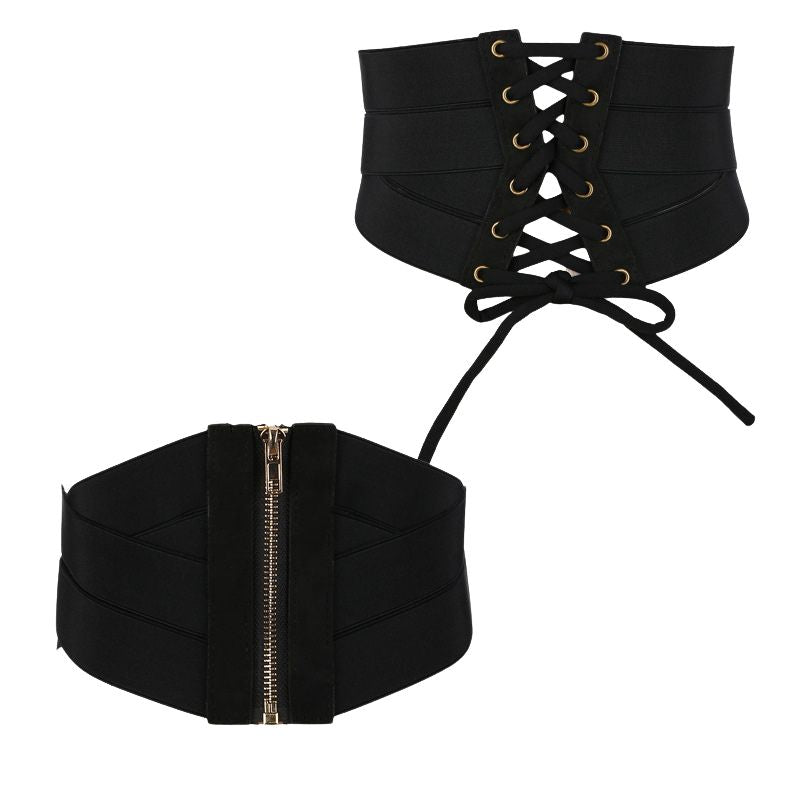 Ceinture femme tissu large style corset à nouer avec zip doré