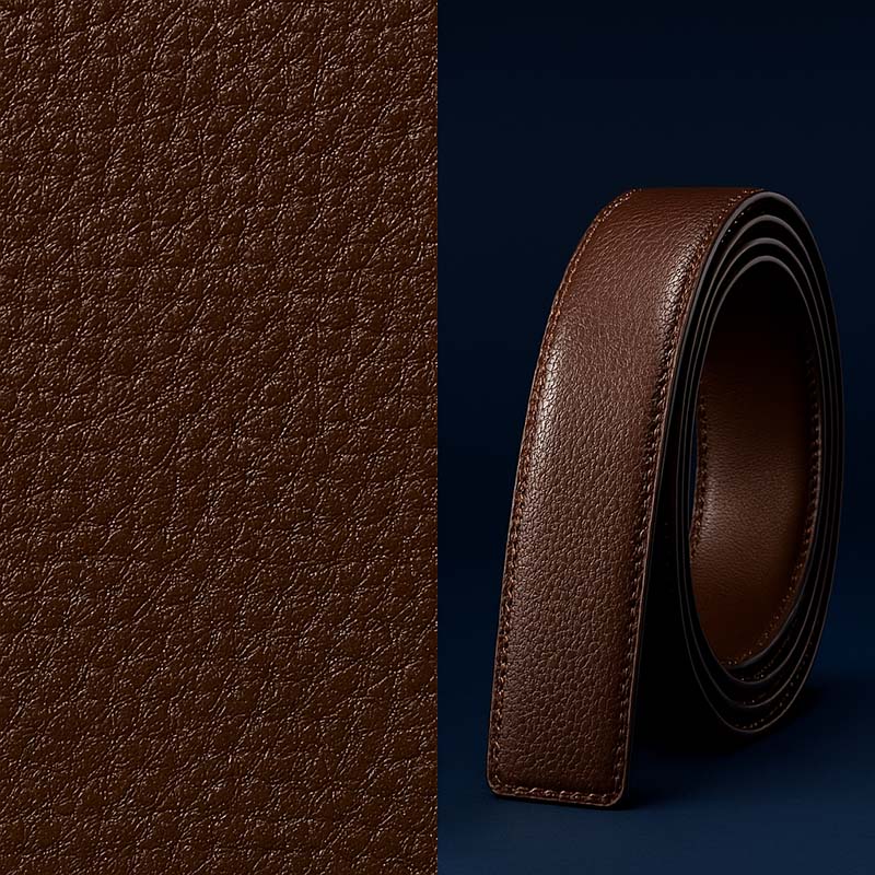 La ceinture Laurent est confectionnée en cuir de vachette deuxième couche, traité pour obtenir un fini grainé et pigmenté (texture 20T). Ce cuir technique garantit résistance et souplesse, tout en conservant un aspect sobre et professionnel. L’absence de couture accentue l’élégance de la silhouette, pour un rendu épuré.