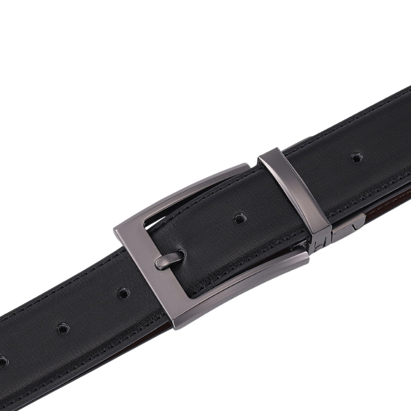 Elle est équipée d’une boucle ardillon rectangulaire en alliage, proposée en argenté, clair ou foncé, selon vos préférences. La boucle rotative permet un changement de face instantané, transformant cette ceinture en un accessoire double face très pratique. Elle s’adapte ainsi à plusieurs styles avec une seule pièce.