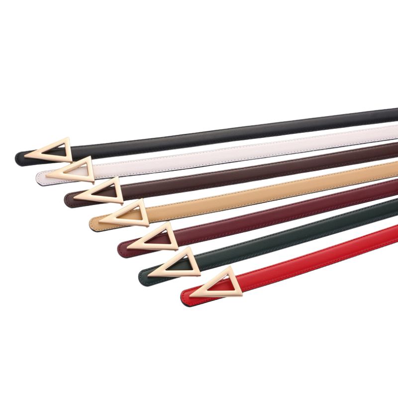 Ceinture femme cuir lisse boucle triangle dorée style décoratif moderne