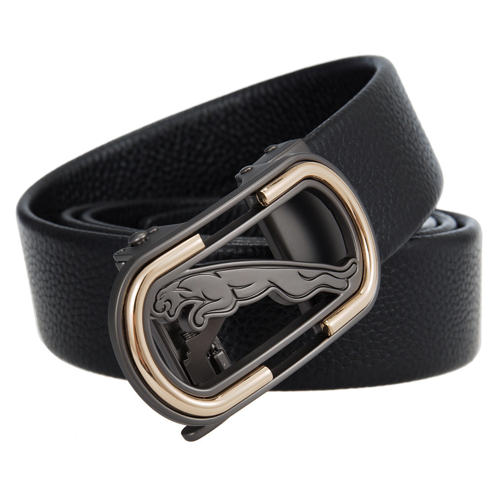 Ceinture homme en cuir refendu texturé, boucle félin automatique stylisée