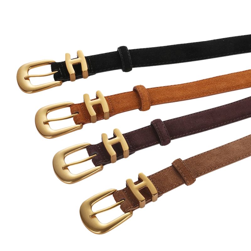 Ceinture femme cuir suédé vieilli boucle ardillon dorée vintage