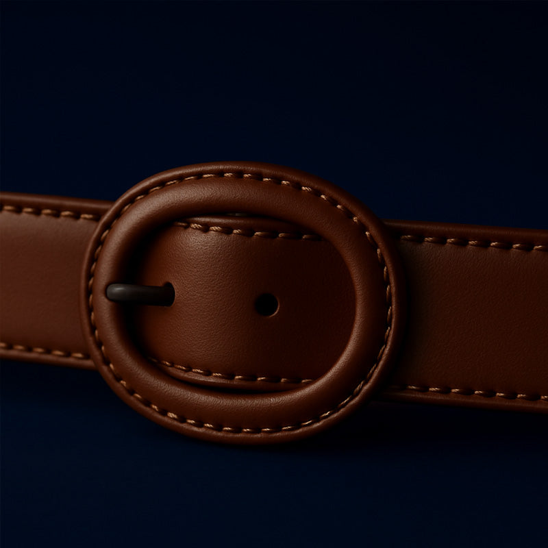 La forme ovale apporte une touche de douceur et d’élégance à la ceinture. Ses lignes arrondies offrent un style intemporel qui s’adapte aussi bien aux tenues décontractées qu’aux looks plus habillés.