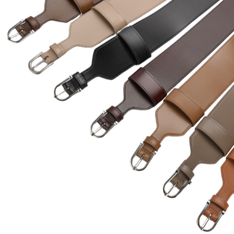 Ceinture femme en cuir refendu lisse style taille haute boucle argentée