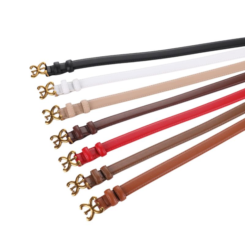 Ceinture femme cuir vachette fine boucle dorée florale chic