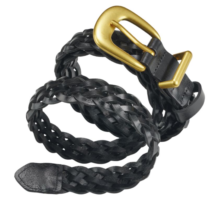 Ceinture femme en cuir pleine fleur tressée rétro boucle dorée arrondie