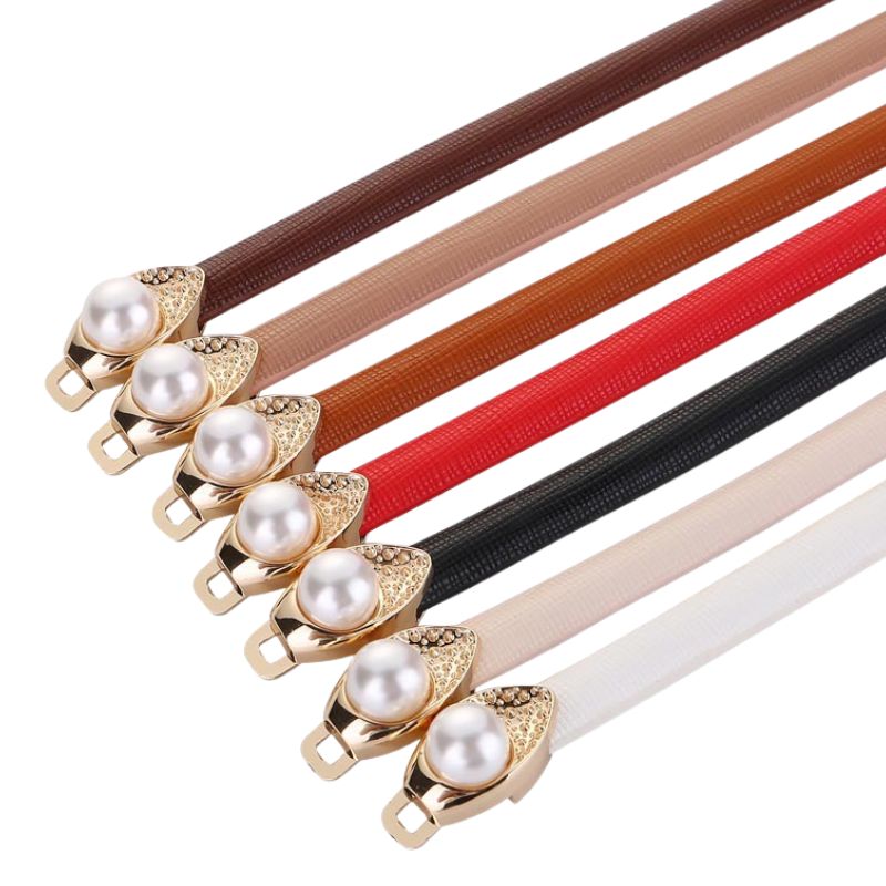 La ceinture est dotée d’une boucle à fermoir clipsable en forme de feuille stylisée en métal doré, ornée d’une perle centrale et de strass brillants. Ce système permet une fermeture pratique sans trous, avec un maintien ferme et ajustable. L’ensemble forme une pièce bijou à part entière, idéale pour les occasions spéciales comme pour un usage quotidien.