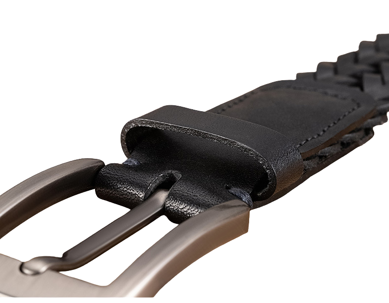 Ceinture homme cuir pleine fleur tressé boucle ardillon rectangulaire