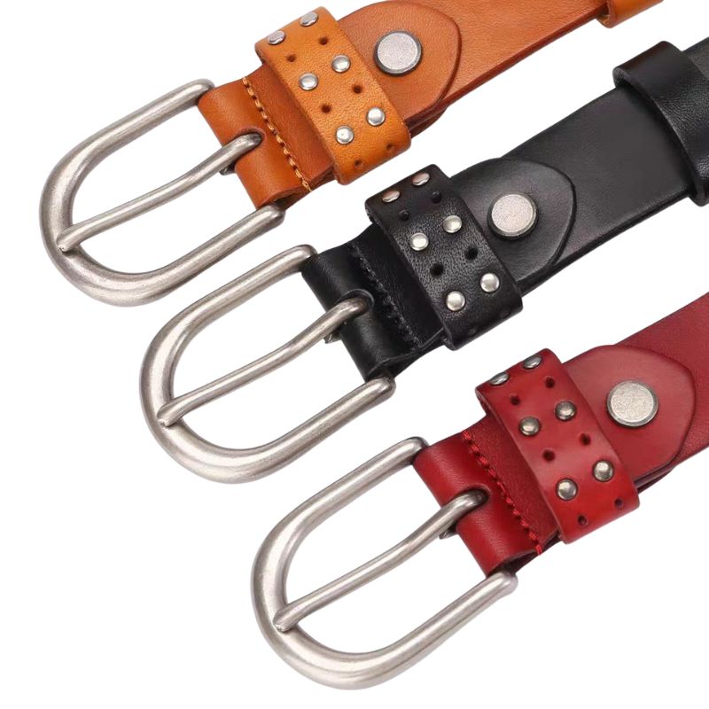 Ceinture femme cuir pleine fleur ceinture cloutée ardillon classique