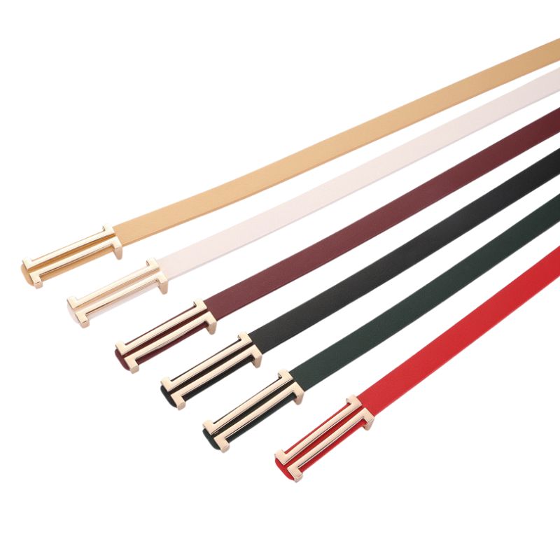 Ceinture femme cuir lisse boucle deux barres dorée style coréen tendance