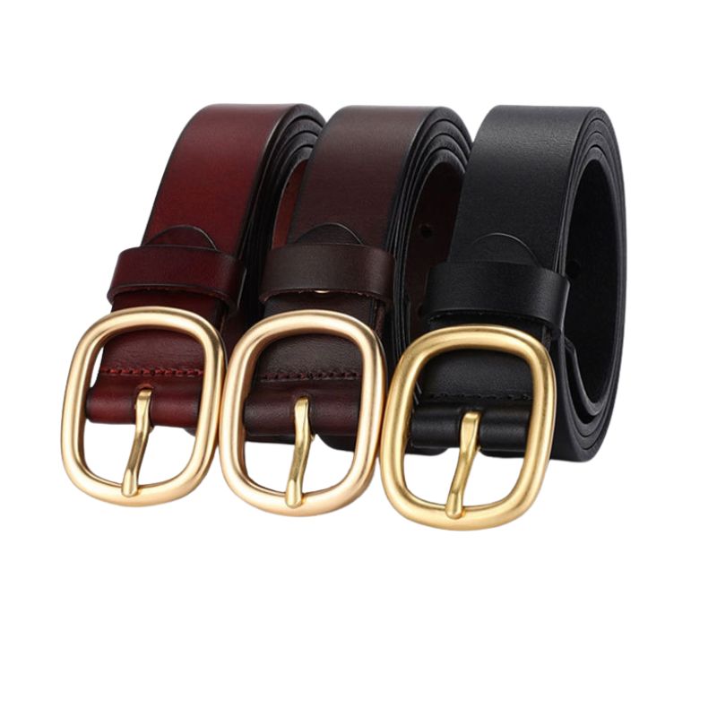 Ceinture femme cuir pleine fleur boucle ardillon vintage manuellement ajustable