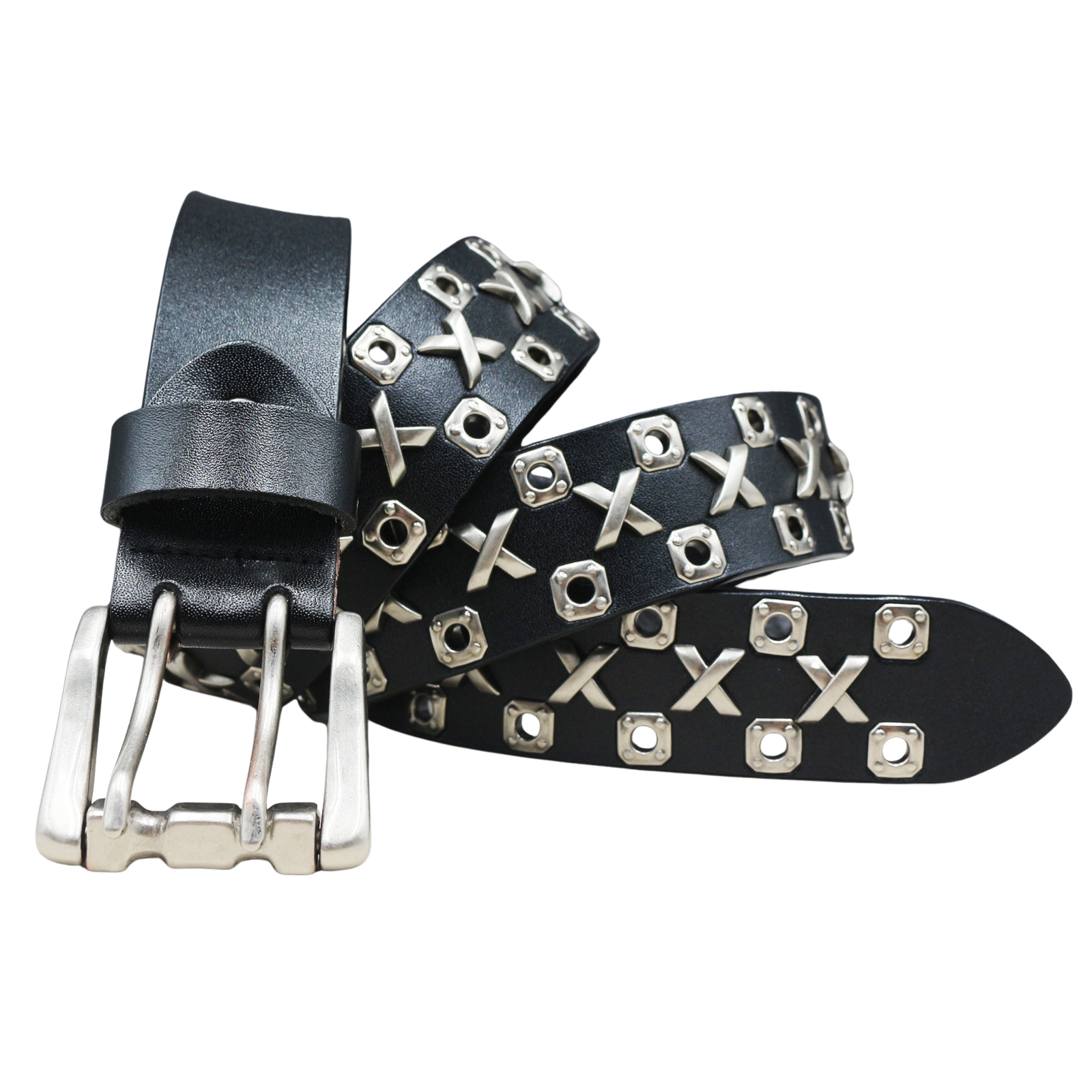 Sa largeur de 2 à 4 cm lui donne une allure imposante, idéale avec un jean. La boucle rectangulaire double ardillon en alliage argenté garantit solidité et maintien, tout en accentuant son style underground.